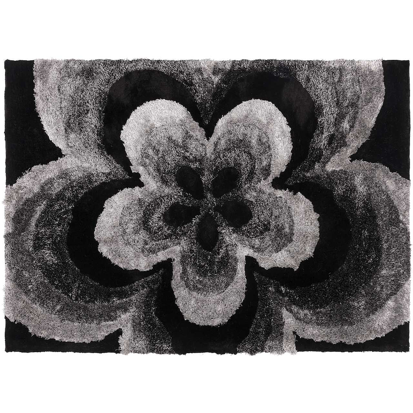 Tall piles rug with the impression of a flower and in grey shade, is available in three sizes. Made of 70% Polyester and 30% Cotton, it is stain resistant. The Rose rug adds more comfort and texture to your bedroom or TV room.